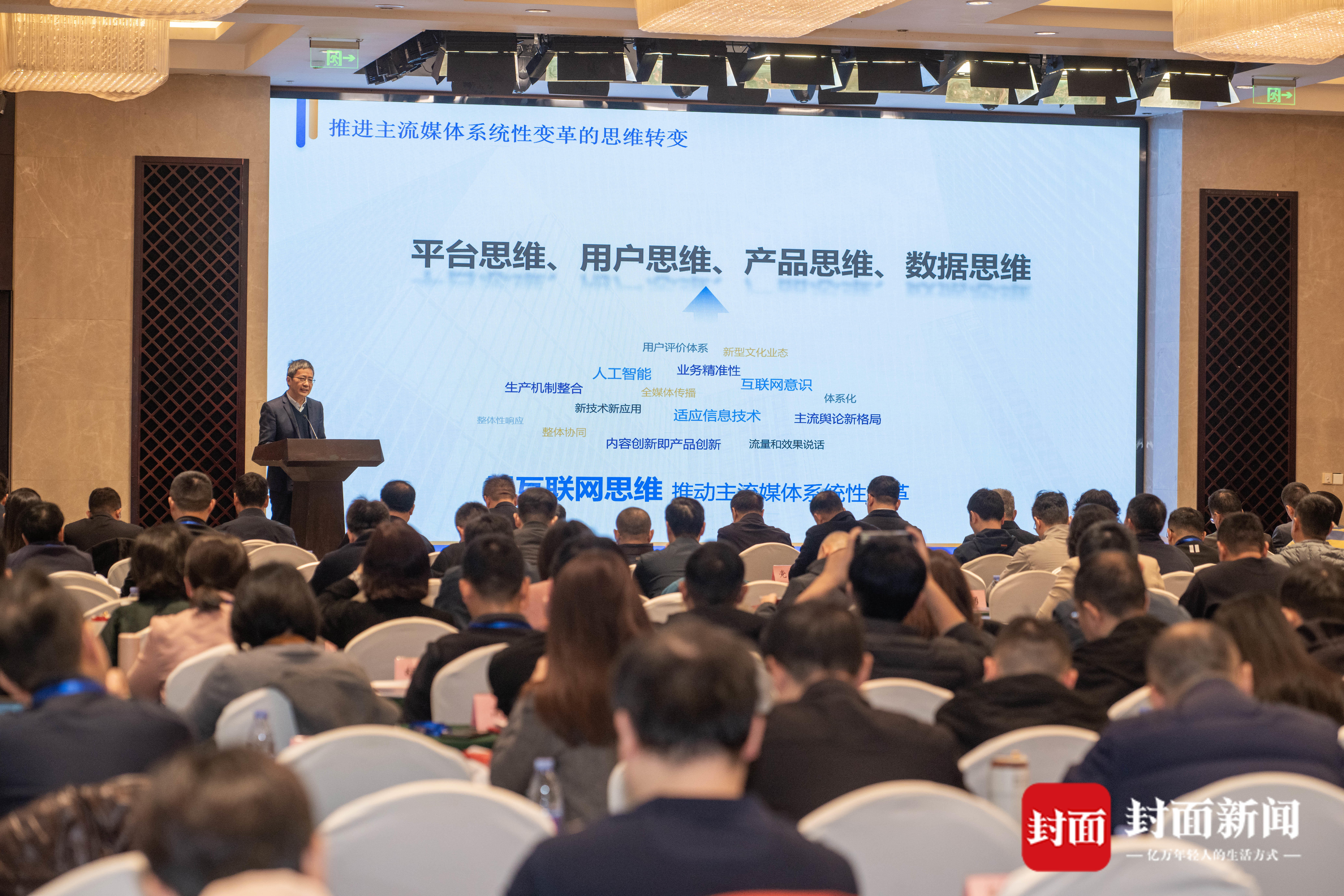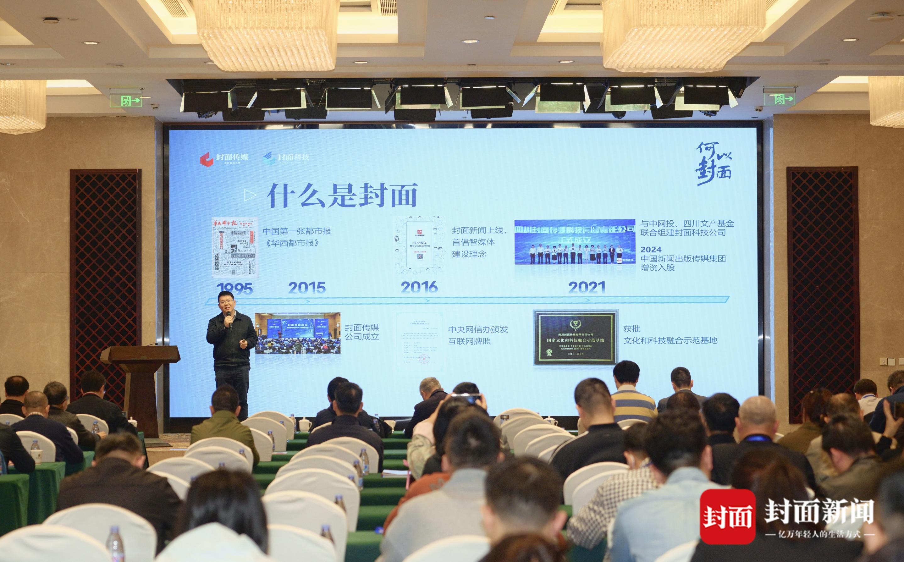 叶建平分享了封面传媒探索推动智媒体建设的经验。作为国家文化和科技融合示范基地,封面传媒10年间致力于“建设懂技术的媒体,研发懂媒体的技术”,加快打造“智能+智慧+智库”智媒体。“我们先后有11篇报道获得了中国新闻奖,有的是科技新闻,有的是运用XR、动画等新技术手段的创意报道。这也让我们更加坚信,打造新型一流主流媒体,离不开强有力的技术支撑和科技赋能。”叶建平介绍,川报集团的技术产品还服务了全国12个省市的部分媒体和机构,智媒技术成果获得了业界肯定。比如,不久前,集团参与的“全媒体跨模态内容认知与智能传播关键技术及应用”项目获四川省科学技术进步奖二等奖,“天府融媒技术平台”和“四川智媒云”荣获2025年王选新闻科学技术奖(项目奖)一等奖。